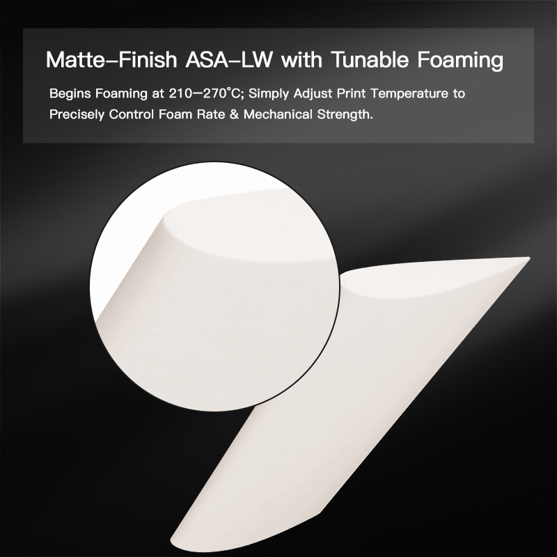 It uses nano foaming technology via a special modification method, achieving over 200% foaming rate without compromising print quality.