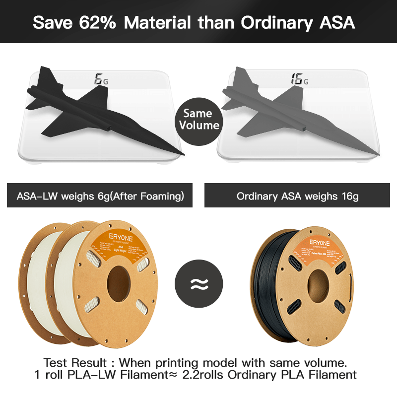 The Eryone ASA lightweight filament is a high-performance 3D printing material that